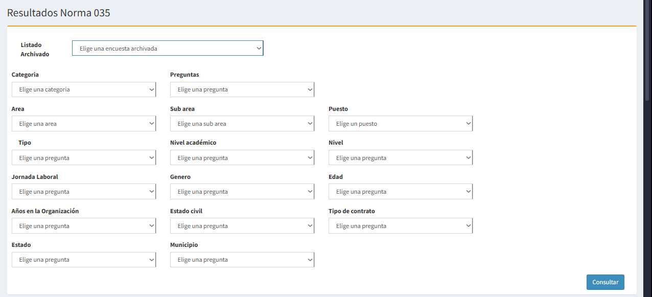 Cruza resultados hasta por 16 variables (área, puesto, estado, edad, género, etc.) → miles de combinaciones para un análisis profundo y flexible.